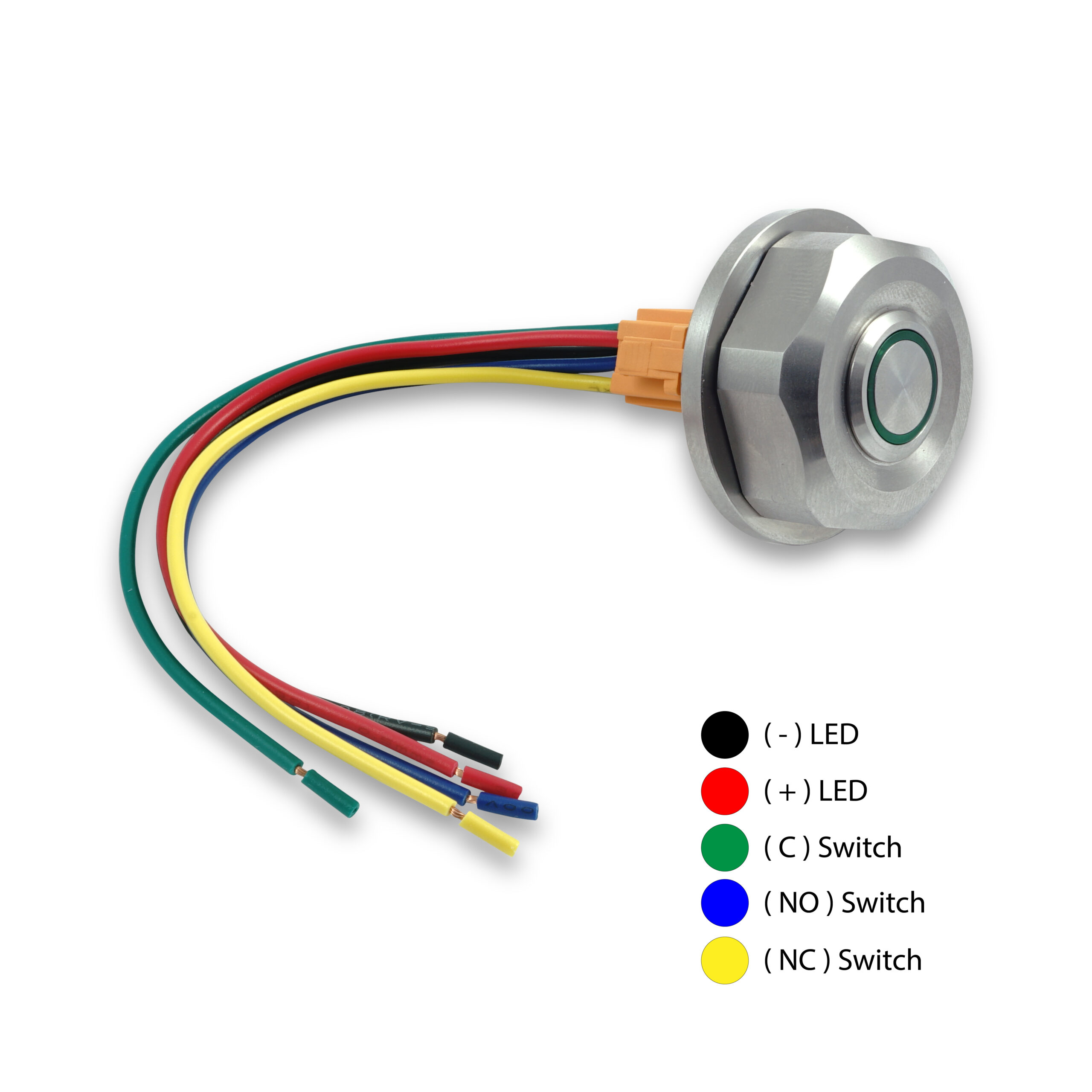 Available with the following push buttons: Red LED, Green LED and No LED. The LED push buttons can be used as indicators for whatever you wish, for example oil pressure or neutral. All the push buttons are rated at 3A and are IP65, which means they can withstand rain and dust. A connector cable is also included, which makes the installation quick and easy.