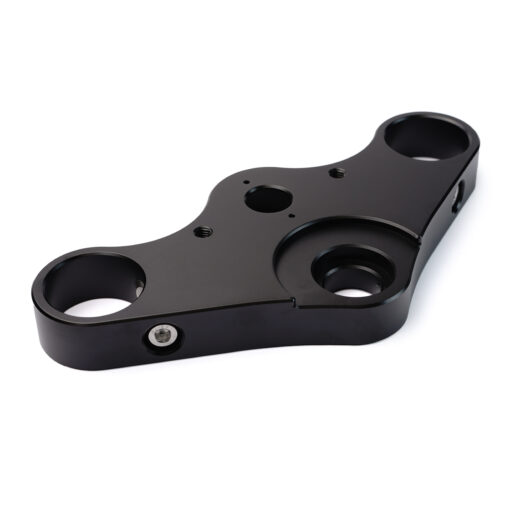 This high quality triple tree clamp is CNC machined out of a single piece of aircraft grade aluminium. After machining the triple tree clamp undergoes a series of surface treatment steps including anodizing. The result is a smooth satin finish that is both scratch and weather resistant. Perfect for a café racer motorcycle build or any other custom build, where you wish to use clip-ons.