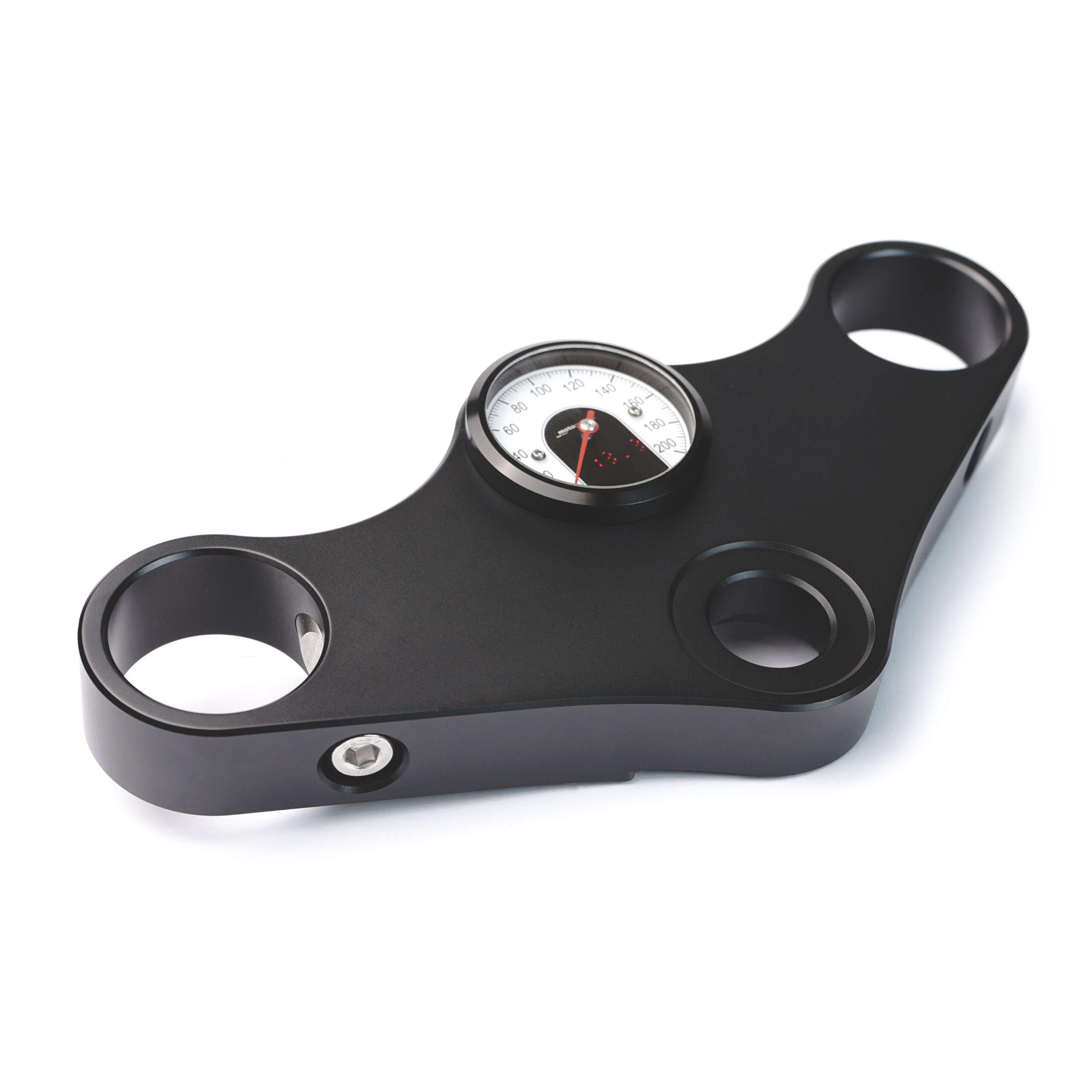 At the bottom of the triple tree clamp there are two M8 holes, which can be used to mount a speedometer or any other parts you wish to have installed. Ignition lock or a bracket for the choke, for example.