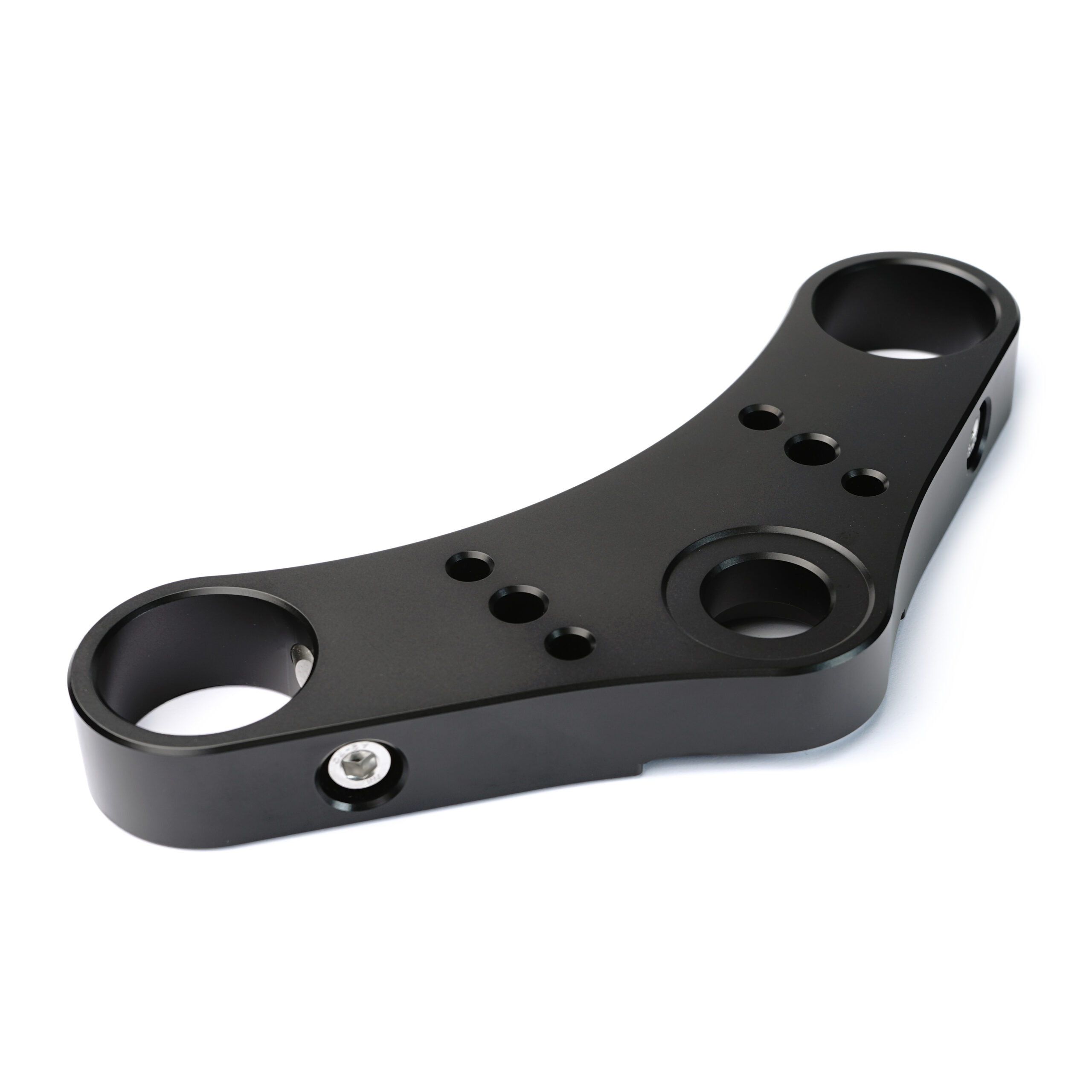 At the bottom of the triple tree clamp there are three M8 holes, which can be used to mount a speedometer or any other parts you wish to have installed. Ignition lock or a bracket for the choke, for example.