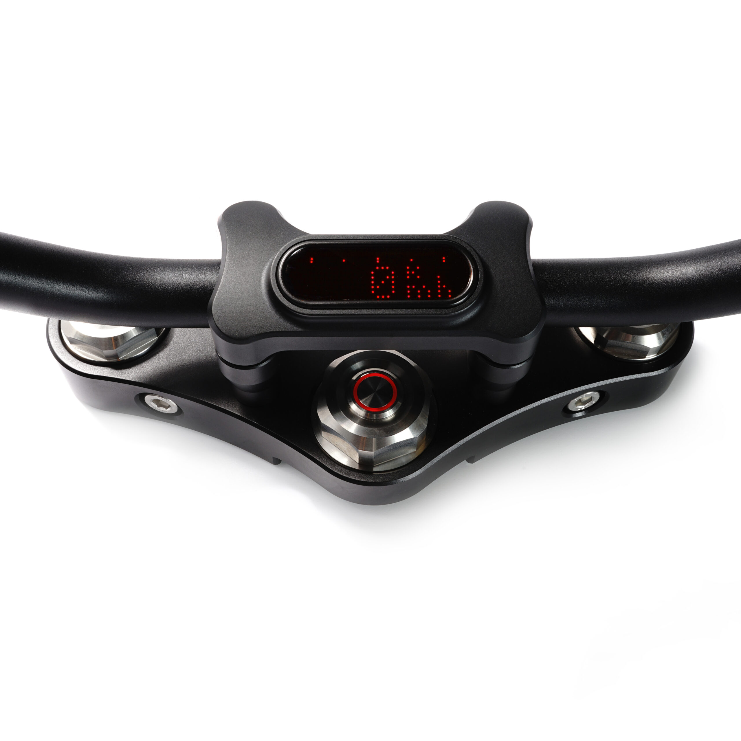 Rebelmoto Risers bracket for 22mm (7/8″) bars and with integrated bracket for the Motoscope Mini speedometer. All wires from your handlebar controls and bar end turn signals, can be hidden within the bars and routed through the risers, including the the cable from the Motoscope Mini speedometer. For that clean look with minimum cable clutter.