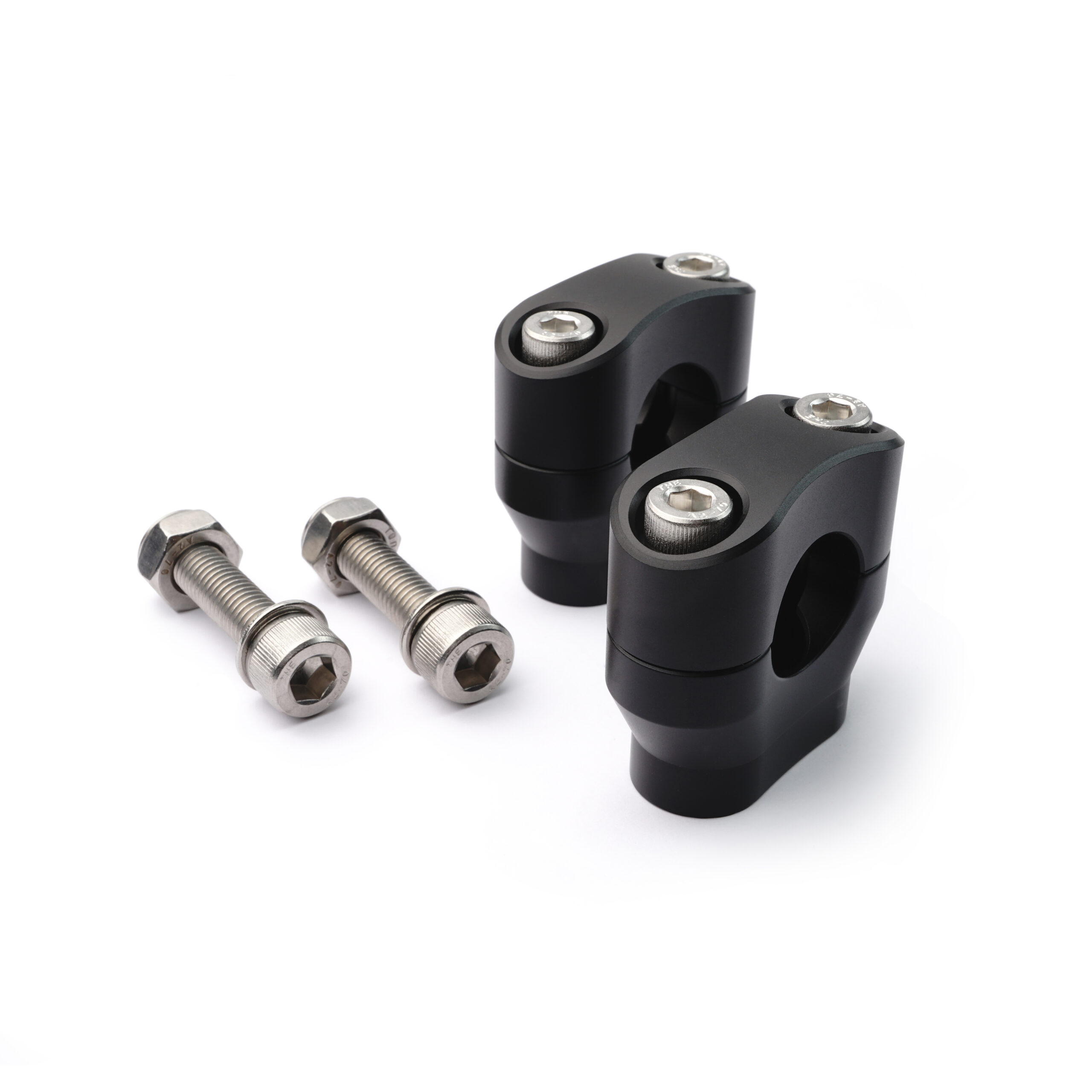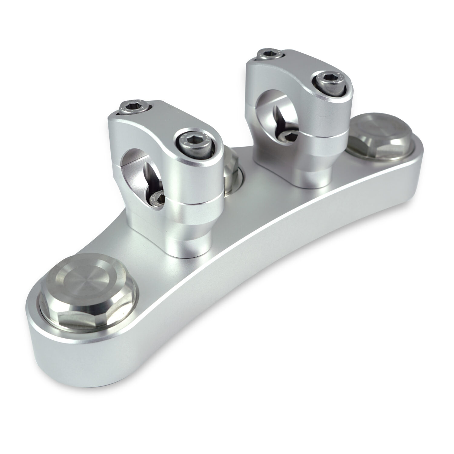 The risers are mounted to the triple tree using M10 stainless steel bolts, which of course are included. They can be used with our own Rebelmoto Triple Tree Clamps, and any other triple tree with 10mm mounting holes. The risers can also be used with the BMW 4mm OEM steel yoke. This requires a minor modification of the steel yoke to enlarge two of the mounting holes from 8mm to 10mm.