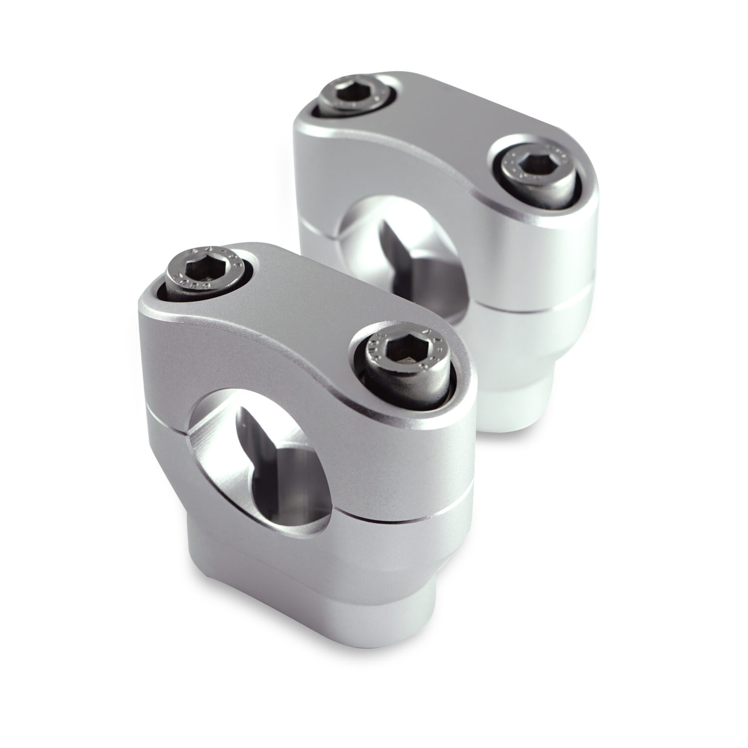 The risers have been CNC machined out of aircraft grade aluminium. After machining the risers undergoes a series of surface treatment steps, including anodizing. The result is a smooth satin finish, that is both scratch and weather resistant. Available in both black and silver anodized.