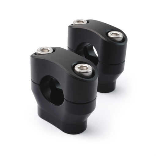 Rebelmoto Risers with hidden wiring channels. Available for 22mm, 28,6mm and 1″ diameter bars. All wires from your handlebar controls and bar end turn signals, can be hidden within the bars and routed through the risers. For that clean look with minimum cable clutter.